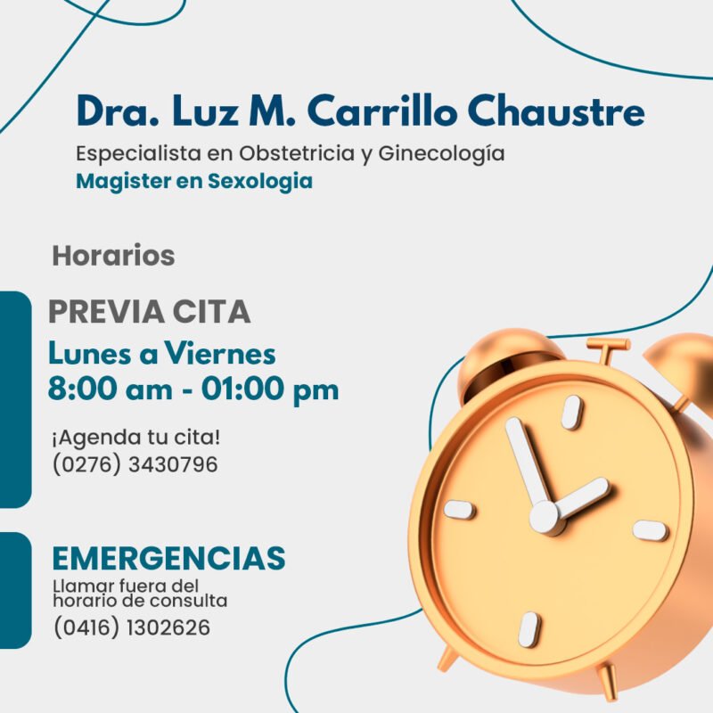Horarios: PREVIA CITA ¡Agenda tu cita! Tel: +582763430796 EMERGENCIAS Llamar fuera del horario de consulta: +584161302626