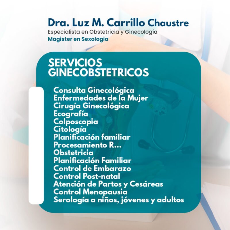 Como especialista en obstetricia y ginecología con más de 30 años de servicio, mi misión es proporcionar atención médica integral y compasiva a mujeres en todas las etapas de su vida. Me comprometo a ofrecer un entorno seguro y de confianza, donde cada paciente se sienta valorada y comprendida. A través de la educación, la prevención y el tratamiento personalizado, busco empoderar a las mujeres para que tomen decisiones informadas sobre su salud reproductiva. Mi objetivo es contribuir al bienestar de la comunidad, promoviendo la salud física y emocional, y asegurando que cada mujer reciba la atención que merece.